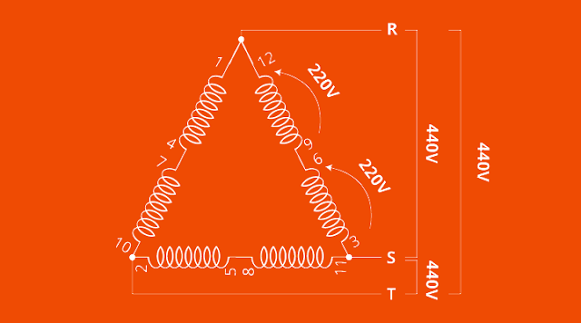 Os 440V estão associados a cada conjunto de bobinas, que por